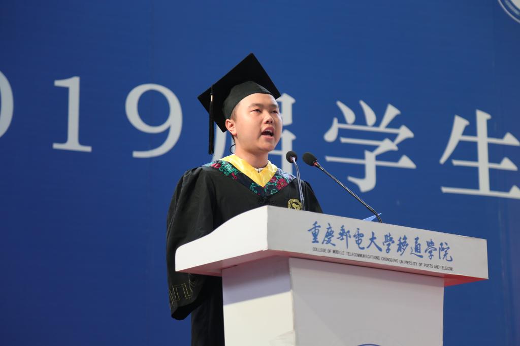 大家上午好!我是来自通信与物联网工程学院通信工程专业、廊桥书院的2019届毕业生,金文涛。非常荣幸作为毕业生代表,在这庄严的毕业典礼上,代表全体毕业生在此发言。四年的时间一晃而过,我们一起经历了大一的纯真年代,告别了大二大三的紧张与忙碌,如今又面临着大四的依依惜别,大学生活里的酸、甜、苦、辣,都是值得我们珍藏一生的珍贵回忆。今天,站在离别的当口,我不禁会想,假如我的大学能够再重来一次,我会怎样?