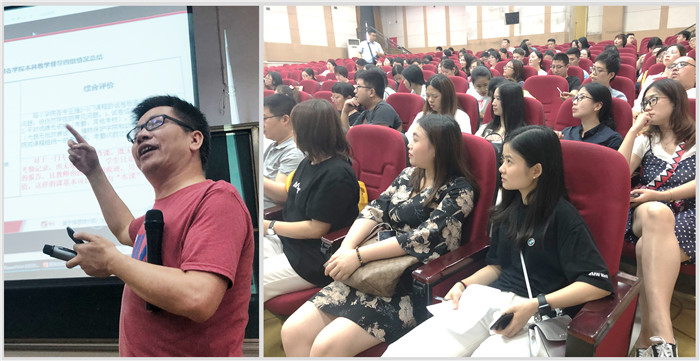 紧接着尹教授就教学软件的操作方法,课前课中课后的比例关系、线上线下混合式教学法的准备工作、提高课堂教学质量等展开了详细而生动地叙述,并鼓励老师们不要拘泥于现状,秉承活到老学到老的精神,不断夯实自己的教学水平和能力。最后,老师们现场提问了相关工具的使用方法和教学中的痛点等问题,尹教授均做了耐心而详细的回答。通过长达2个小时的交流和分享,在幽默生动的讲授和学习氛围中,此次讲座圆满画上了句号。