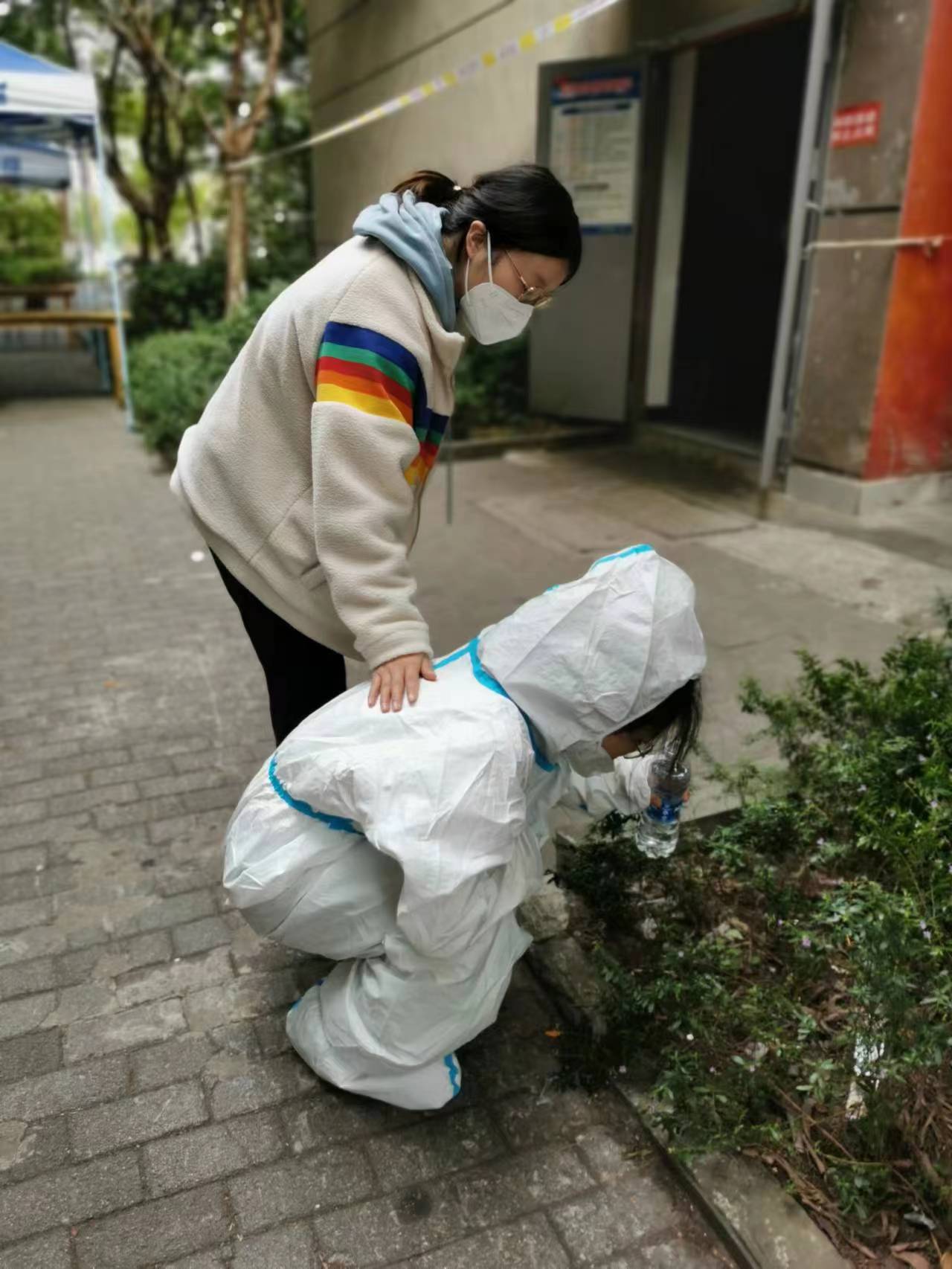 现在已是志愿者进校第7天了,极度的身体疲惫尚能挺住,对于亲人尤其是宝宝的思念之苦如同刀割。数不清地楼层搬运、无数次的测温扫码、声嘶力竭地吆喝,一天又一天。每天下岗后,走在回临时宿舍的夜幕笼罩的昏暗的路上,似乎是走在无尽的绵长的隧道中,不见光明,不见尽头。
