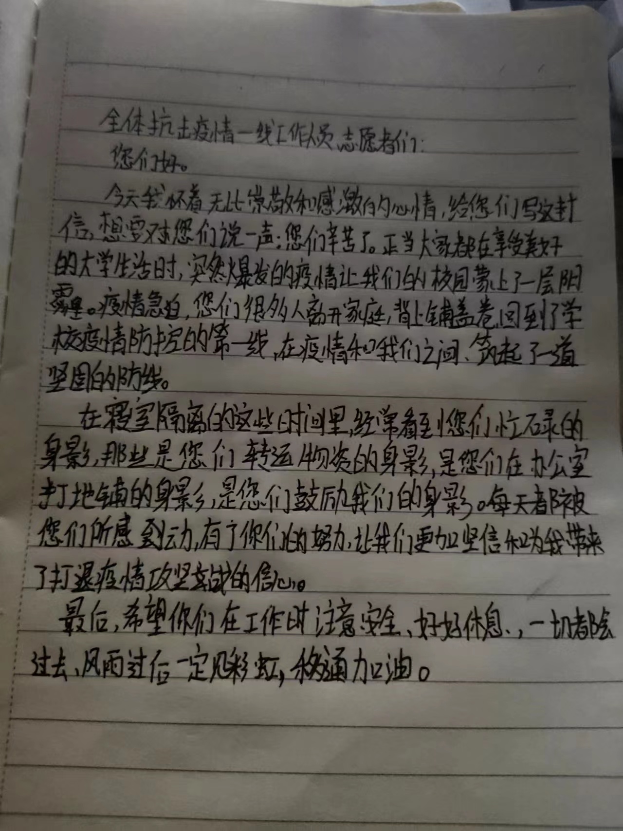 我们是志愿者,我们更是老师。习近平主席说:“教师要成为大先生,做学生为学、为事、为人的示范,促进学生成长为全面发展的人。”严重的疫情之中,为学生解决生活问题是做人的本分。而作为老师者,更应有勇于吃苦、勇于担当、勇于奉献的育人责任。一万句的言教,不如一次身教。多少移通学子写下了感谢信,多少移通学子立下了决心书,这不仅是感谢信、决心书,更是一份一百分的答卷!正是这些立起了志愿者心中不屈信念的支柱!