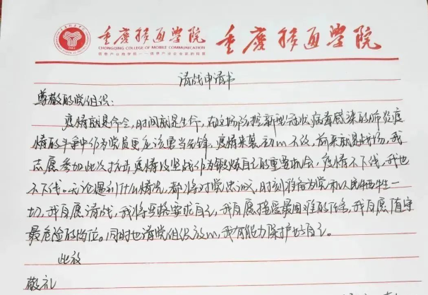 “我是共产党员,我将坚定信⼼,牢记使命,随时听从党的召唤,冲锋在先,不惧危险,迎难⽽上,竭尽全⼒,为全校师生健康保驾护航!勇敢⾯对疫情,逆风前⾏,守初⼼,担使命,以实际行动来践行自己的誓言,作表率、挑重担,为党旗增辉。”