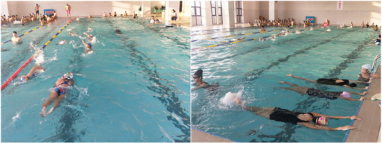 10月初,校女子游泳队迎来了一批新面孔。新生基础训练起初都是枯燥难学的,换气、漂浮、打腿、划手对于自由泳来说都是很重要的训练。大一的新队员们跟着教练和学姐们在岸上学习打腿和划手动作的分解,认真学习和纠正自己的动作。在水里,她们反复练习,让自己的动作像在岸上一样流畅,学习进度虽然不同,但她们反复练习每一个教练讲过的细节,以致达到标准动作。