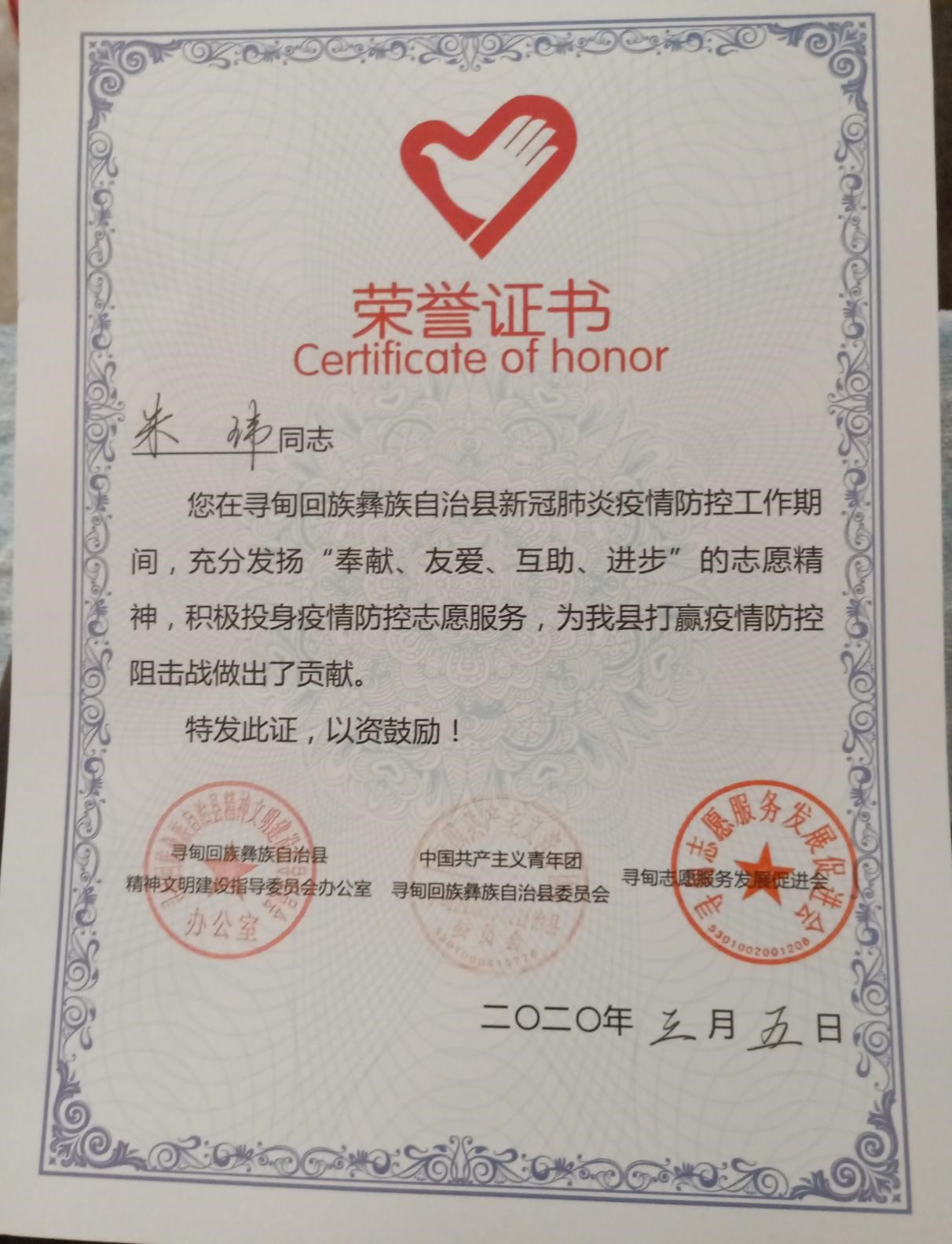 当前,疫情处于较为严重的复杂时期,疫情防控更是处于关键阶段,需要足够的人手加入到疫情防控工作中来。作为一名大学生,同时又是共青团员的我,积极响应寻甸县团委号召,加入到我县的志愿服务防疫工作小组中来,看到我们县团委发的志愿者招募公告,我便毫不犹豫报了社区服务志愿者,在这里我遇到了许多同我一样的青年大学生,他们踊跃报名参与到疫情防控志愿服务队伍中,他们都是一群有着奉献,友爱精神的青年大学生。
