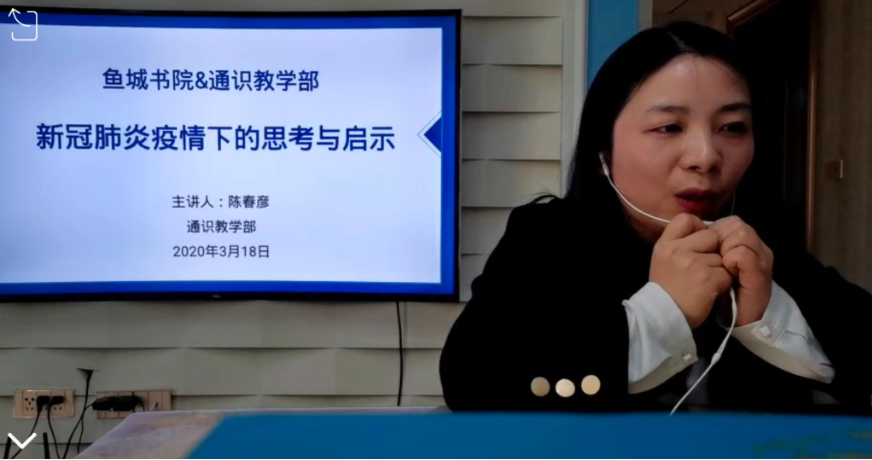 随着假期受疫情影响而逐步延长,久居在家的同学们一定对这个漫长的寒假有过或多或少的思考,在这焦虑与期盼返校的换挡期,通识教学部哲学课程团队联合鱼城书院开展线上主题知识宣讲活动,帮助移通师生稳定心态,助力抗议防疫,3月18日下午,首场以“新冠肺炎疫情下的思考与启示”为主题的线上直播讲座开场,由我校通识教学部陈春彦老师为大家主讲。