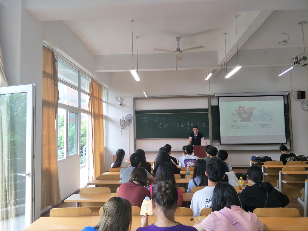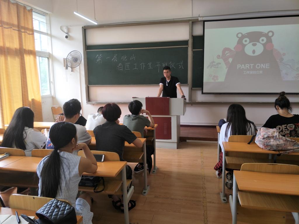 2018年5月18日下午4点,第一届北山书院百匠工作室开班仪式在7206教室准时开始,此次的开班仪式由北山书院发展导师向汀老师主持。北山书院百匠工作室鼓励学生坚持培养自身兴趣和特长,通过兴趣人群的集聚、特长作品的展示,找到获得感和自信,并且在实践中探索和总结,共同丰富和完善书院领导力育人体系,面向全校学子招募特色工作室组别共两个方向,一个是综合造型艺术工作室、另一个则是动漫画和插画工作室。艺术育人,完满北山,艺术需要坚持,百炼成钢是为匠人精神,也是北山坚韧力的直接体现。