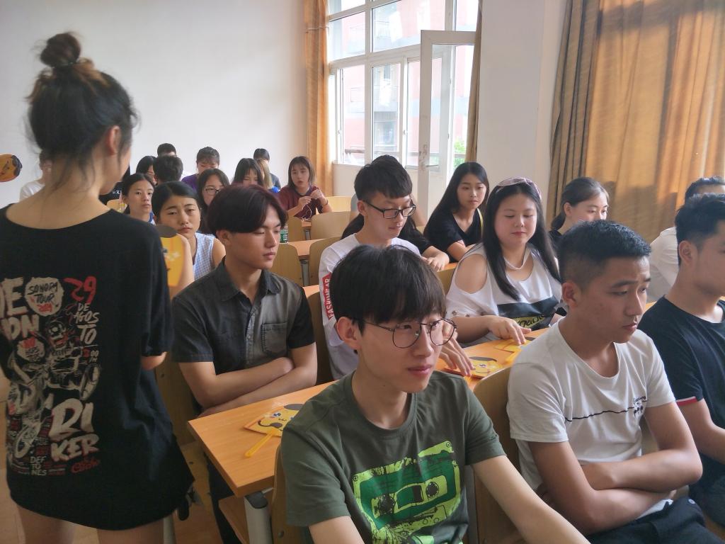 百匠工作室活动前期报名人数达到了近百人,同学们在报名时需要提交一份自己的作品或者照片,发展导师向汀老师在这报名同学的作品中进行筛选,最终筛选出30名同学作为此次北山书院百匠工作室第一批的学员。开班仪式这天,云层厚重闷热好似要酝酿出夺目的闪电,大家对此次活动的热情却依然不减,通过初选的30位同学准时到达并参与到此次开班仪式中来,北山书院干事为每位同学送上印有北山小山蕉形象的扇子,为大家消散掉一点暑热,也让大家可以感受北山书院文创产品的魅力。