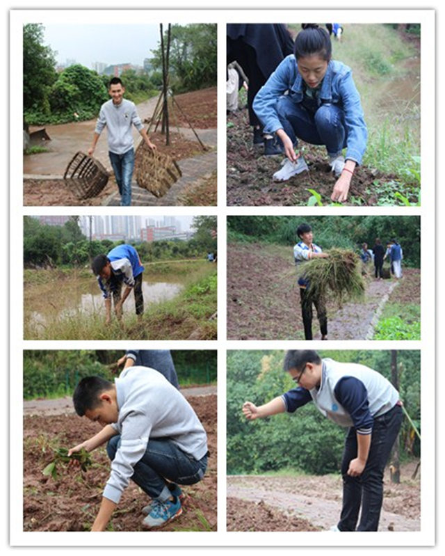 而更令人意想不到的是,这些温室里长大的小农夫丝毫不畏惧黏腻的泥土弄脏他们的鞋子、袖口,反而卖力地在这大自然恩赐的土地上辛勤地耕耘。女生用细嫩的胳膊抡圆了锄头,一下一下地凿进土地再抽出,有些结块的土壤立马变得松软充盈。男生踩入水塘毫不犹豫地用双手拔掉杂草,用箩筐一筐一筐的装满再运走。 劳作不久,那个飘满落叶,长满杂草的田地已经焕然一新。小农夫们对于除草松土也越发熟练,在这片自己耕耘的土地上撒下菜籽和幼苗,也象征着为接下来的生活增添了一份期待。