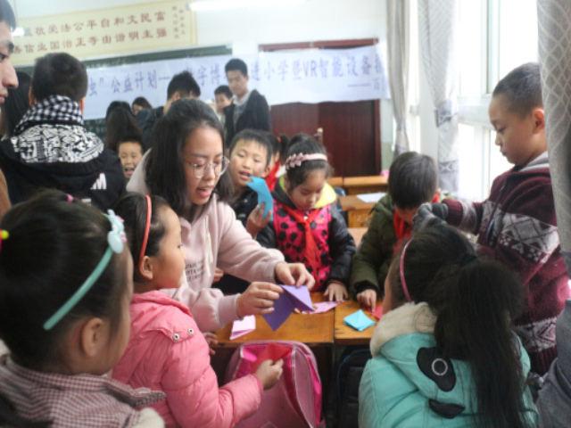 12月9日,百度百科俱乐部走进东渡小学,为其带去百科VR博物馆的智能设备,在参观东渡小学,全面了解该校学生的学习环境之后,捐赠仪式随即进行。百度百科俱乐部将含有百科VR博物馆的智能设备免费捐赠给该小学,与校方代表签订捐赠协议,并现场为东渡小学的学生们科普VR技术和VR设备的使用方法。师生们通过VR设备“实地参观”了三星堆博物馆、云冈石窟、自贡恐龙博物馆等数十所著名博物馆后,纷纷表示:“就像发现了一个全新的世界!”看着同学们欣喜的样子,也不由得感叹科技的伟大和行者的力量。除此,百度百科俱乐部的同学们还发放了为小朋友们带去的各类学习用品,并与小朋友们一切制作了手工折纸,海报涂鸦等DIY物品,其乐融融间,我们用百度百科俱乐部特殊的“公益温暖”方式温暖着大家的心。