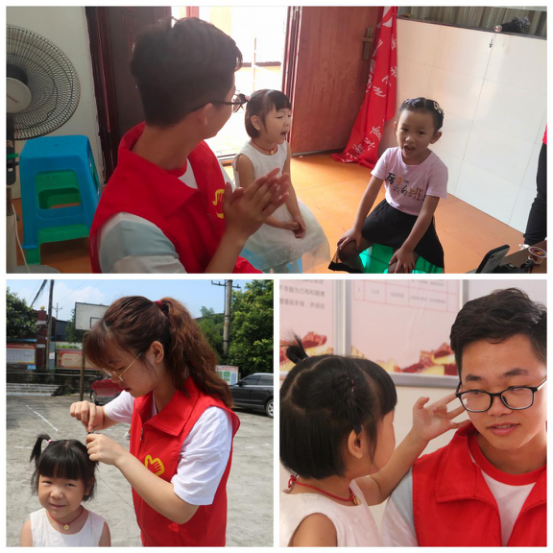 志愿者们至今记得孙子涵和唐糖两位小朋友第一次见到他们时那种羞涩的样子:一句话都不敢说,躲到角落里生怕别人看到自己。志愿者们发现后,主动与她们聊天,了解她们的家庭、性格、喜欢的东西,以便有针对性的进行帮扶。现在她们与志愿者们玩的特别开心,每次接她们时那甜甜的微笑和暖暖的嗓音都能融化志愿者们的心。今天早上得知是哥哥姐姐们来的最后一天,两个小朋友就合唱了一首《小梦想》作为离别礼物,但志愿者们更希望像歌曲中的歌词一样,在这几天的交流后能为小朋友们种下一个个梦想。