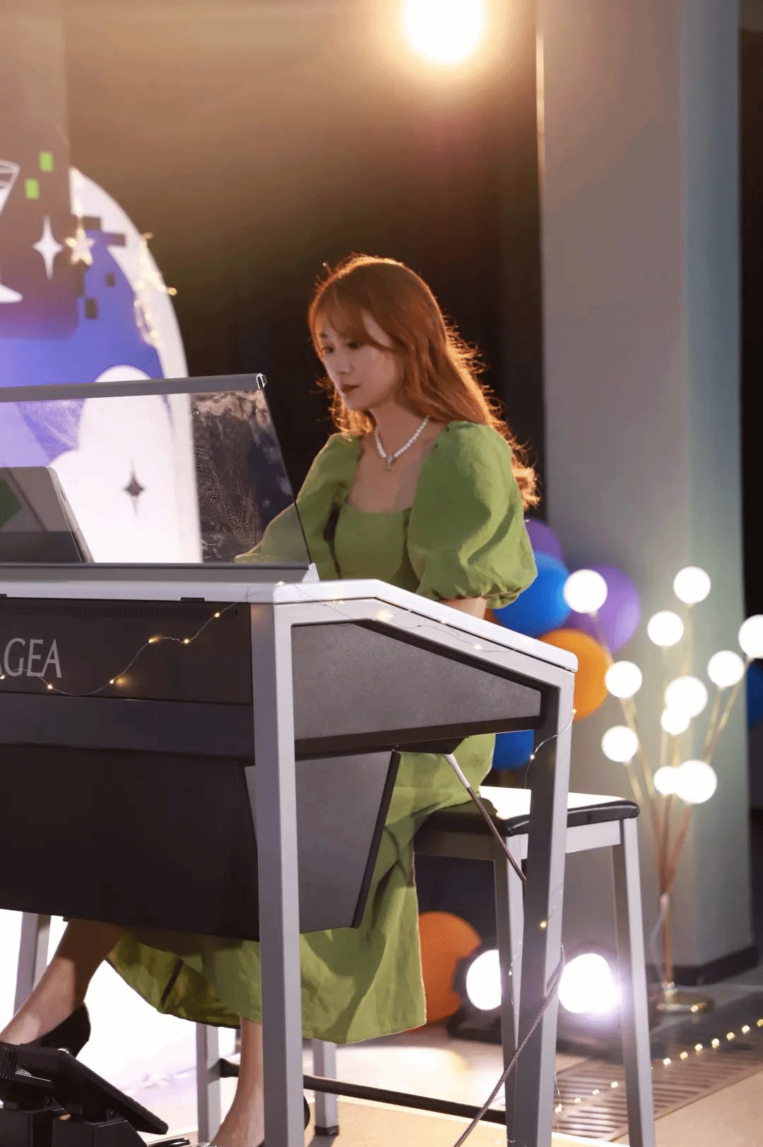 精彩内容不断呈现,刘强同学带来一首完全不同曲风的《摩羯座》,重庆方言说唱,别具特色。由科幻合川团的万俊杰、吴晓麟、周杭三位同学带来合唱《野心》,是科幻电影《缉魂》的推广曲。原创歌曲《住进我眼里》,由陈莉同学作曲,和王青逸老师联合作词,是一首甜蜜小情歌。宁思洁老师的学生韩汶君,带来古筝独奏《莫问归期》,为大家演绎古风流行歌曲的韵味和魅力。王菲老师为我们带来的是一首双排键演奏音乐——《One'sHeart》,这是一首慢爵士。温柔饱满的琴声配上优美华丽的舞姿,给我们带来一场视听盛宴。中场还有王青逸老师为大家准备的猜电影名的游戏互动环节。