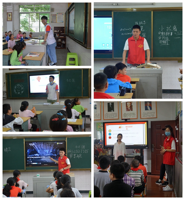 经过简短的会议后,支队相继开展了“扶贫专项活动之未来小小领袖成长营”教学活动,小志愿者们纷纷穿上红马甲,充当起了代课老师的身份。演讲与口才课堂上,第一堂课进行了小记者培训,学生们反响积极;音乐课堂上,学生们伴随着悠扬的歌声齐声歌唱;国学课堂上,诗书礼仪等中国博大精深传统文化熏陶学生们的情操;体育课堂上,趣味运动丰富了学生们的生活。