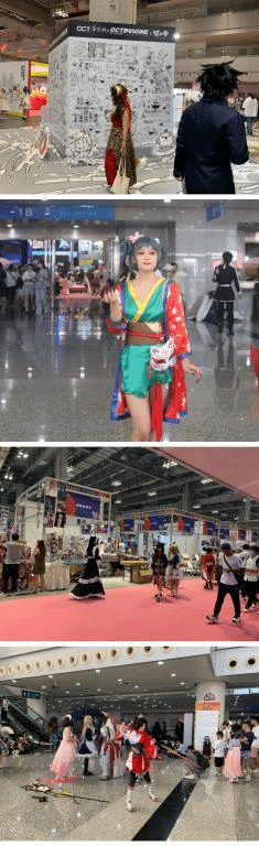 步入展馆,人山人海,各个场馆主题各异。有游戏竞技,现场比赛;有动漫电影,实时播放;还有各类周边文创,展示销售等等。各种色彩冲击、各种美术风格汇聚一堂,这不仅展现着各家自有各家的独特风格,更是体现着当代交融互通、星光璀璨的文化氛围,同学们在其中四处参观交流,不亦乐乎。场馆里也到处都是拍照打卡的游客。看到处处人潮涌动,大家都提着现场限定出售的周边产品,莲小君不禁感叹“动漫产业熠熠生辉”。如此盛况,更是体现了人们精神文化生活的日渐丰富。