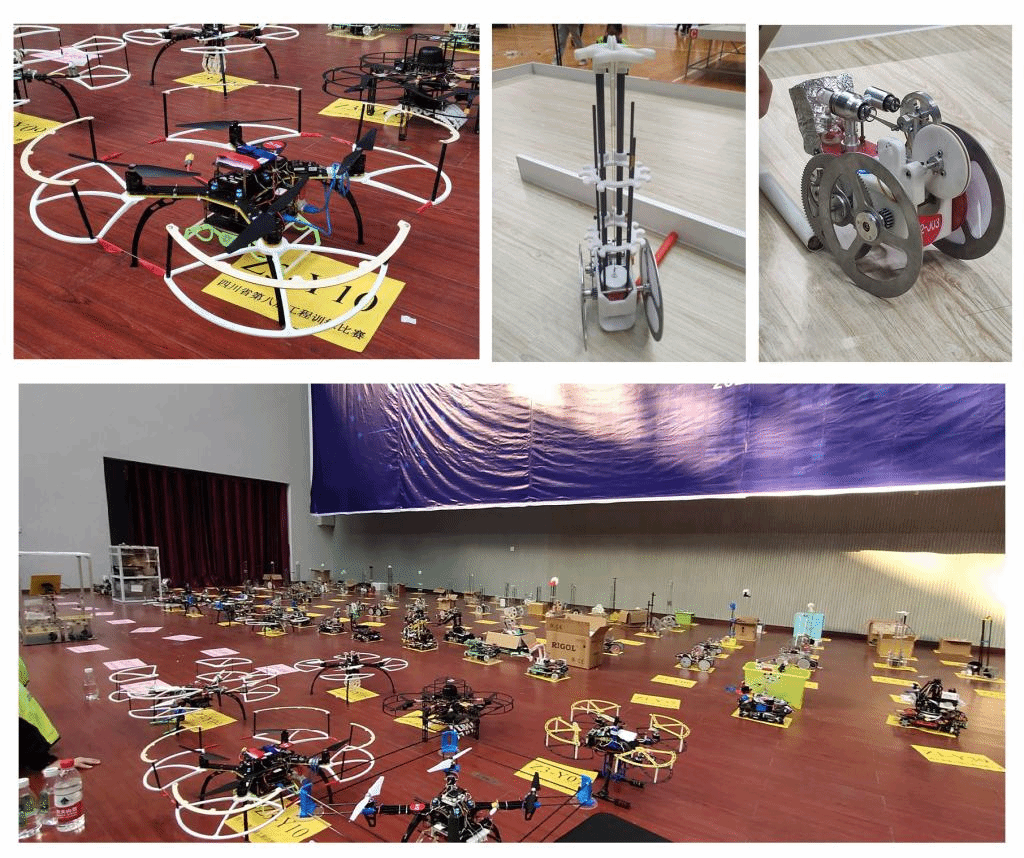 为了全面贯彻全国教育大会精神,围绕创新驱动和制造强国战略,主动应对新一轮科技革命和产业革命浪潮,深入推进工程教育改革,全面提升大学生工程创新综合素质和能力水平,本届大赛组委会对赛项进行了大幅度升级和调整,使比赛由原来的1个赛道2个赛项扩展为4个赛道13个赛项。在本次观摩学习期间,我校师生重点观摩了工程基础赛道的重力势能和热能驱动车赛项,以及无人机、搬运机器人、全地形爆破小车等赛项。