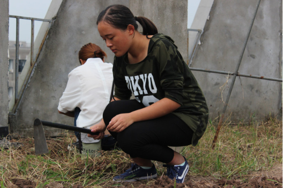 尽管没有灼人的骄阳,气温也不是很高,但板结的土地迫使大家一次又一次地挥舞锄头,起身弯腰,汗水居然爬满脸颊,浸湿衣襟,拆卸种植园的支架也是令人头痛的事情,支架经过风吹雨打,早已锈迹斑斑,生锈的铁丝锋利无比,不知在多少人的双手中留下了“它”的痕迹。但大家没有说出一句苦,喊过一声累,依旧坚持着劳动,这种认真的态度、吃苦耐劳的精神,才是真正凝聚大家的力量。
