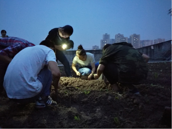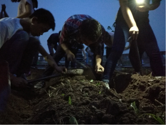 昨天我和大家一起参与了农耕种植劳动,这是我进入农耕第一次这么大幅度地在地里翻土整理,还没开始之前,满怀期待,满怀热情,迫不及待的要赶紧行动起来,可当真做的时候,我觉得并不是那么简单,因为锄头很短,所以就得蹲着或弯腰来翻土,保持这个动作久了,就会很累。也会觉得厌烦,但是看到部门的其他小伙伴们依旧认真的做着我没理由偷懒。天渐渐黑了下来,也下起了小雨,因为这次的种植工作时间很紧,不得不做完,几位部长让我们女生可以不用做了,但是之前陆陆续续走了很多人,他们赶着上课或有其他工作,人员已经没剩多少了,部长们从一开始就一直在翻土整理,已经很累了,看着也觉得很感动,就算我做不了太多,陪着他们,用手机给他们照光也会好一点。