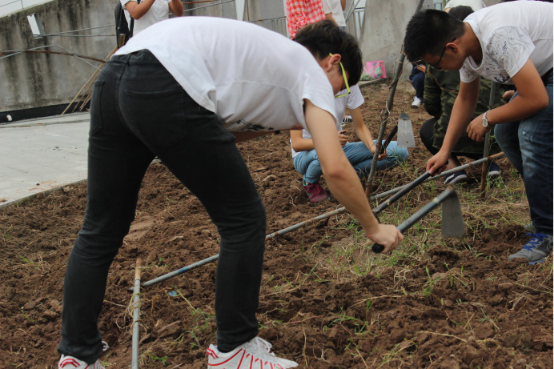昨天的农场种植劳动,充满了艰辛与汗水,如果非要用两个词语来形容的话,那就是——苦累和甘甜。虽然看起来锄地是一件简单有趣的事情,但是当你参与其中就会发现除了有趣,更多的是感悟,感悟劳作的艰辛,感悟土地的神奇,感悟集体的力量,感悟生活的不易。一遍遍的挥舞着锄头让自己的手上磨出了2个小水泡,但我的内心却是无比的甘甜,“劳动使我快乐”这句话看起来很做作,但它并不虚假。在这其中我体会到了劳动独有的喜悦,体验到了亲手把菜苗种下去并期盼着它能茁壮成长的幸福之感。