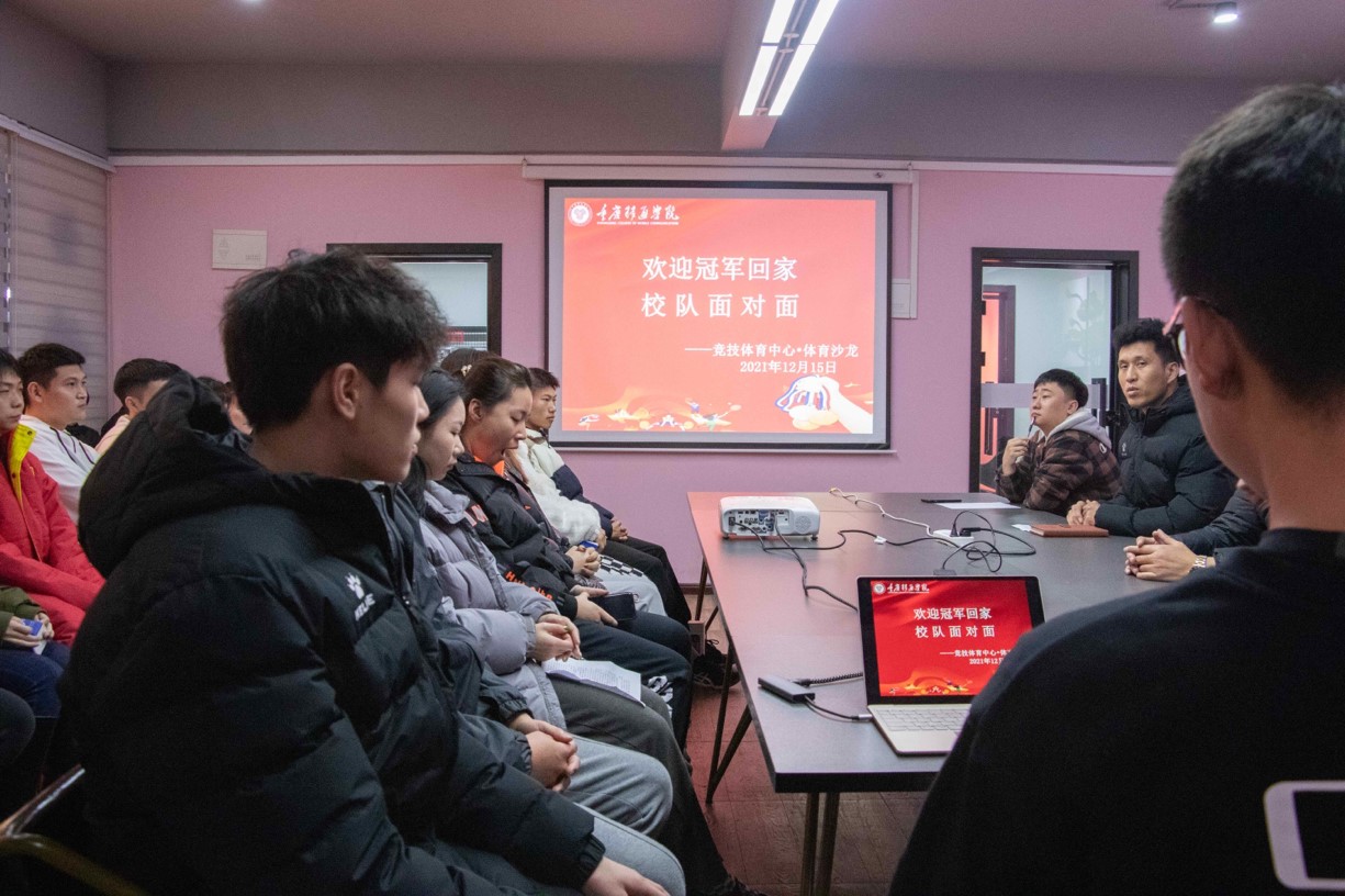 12月15日,竞技体育中心于爱莲书院多功能会议室举办了主题为“欢迎冠军回家·校队面对面”的体育沙龙分享会。参会人员由本学期参赛各校队教练员与队员代表40余人组成,会议由孙哲主任主持。竞技体育中心刘玉林副主任、体育活动部岳振远主任,体育教研室任德利主任出席本次会议。