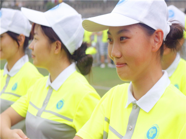 镜头中的小学妹,正在练习军姿,面对镜头,他们一脸害羞,但是他们却是绿茵场上迷人的“萤火虫”。