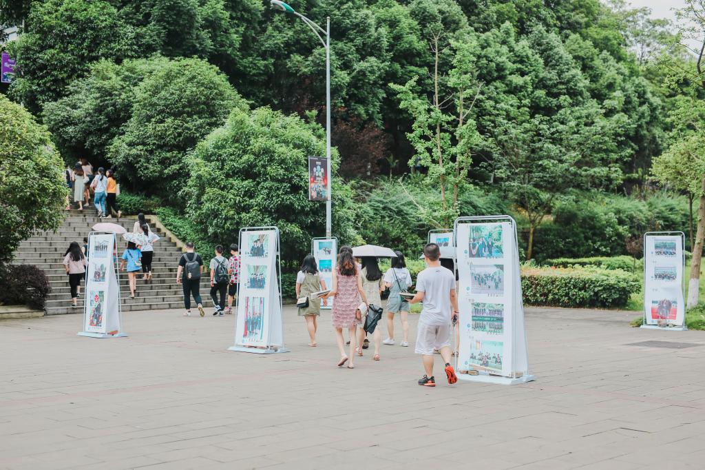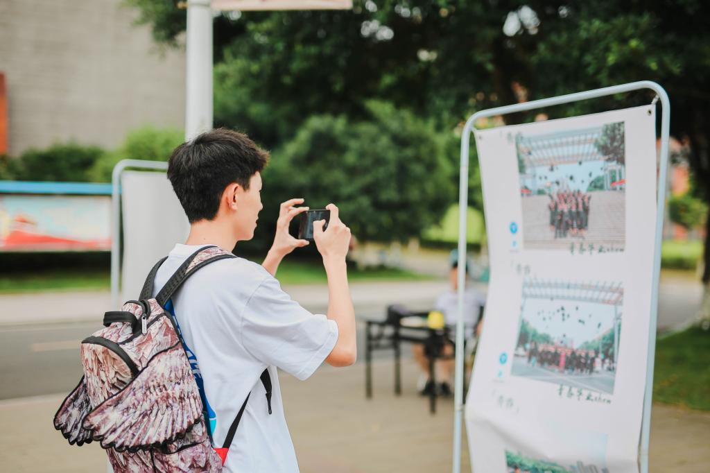 过往的同学们也逐渐被毕业照展所吸引,也停留下来见证学长学姐们留下的大学最美时刻,有人拿出手机拍摄,有人看着照片若有所思,很多同学都通过采访表达了自己心中的想法和对所有毕业生的寄语。