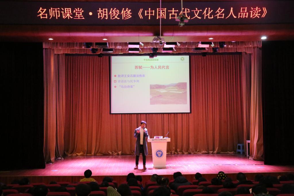 “一生曲折,旷达传千秋;亘古辉耀,文章成四家。”当几纸金墨伴着喧嚣散落,东坡一笔划过,这又是怎样的气概?用旷达塑造英雄,用豪情去冲破逆流。12月4日晚7点在下里巴人剧场,胡俊修老师为同学们讲述苏轼的一生,体会“千古风流人物”的风情和境界。