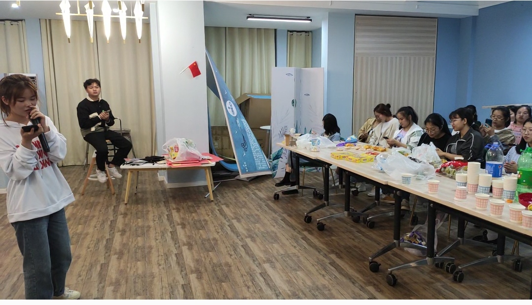 9月29日,在志愿团综合办公室的部门见面会上,大家来到在南湖书院,以这样独特的书院名,提前庆祝即将到来的“十一”国庆中秋的到来。大家欢坐一堂,唱起了创意写作志愿团的团歌《夜空中最亮的星星》。不知谁打开了手机闪光灯挥动着,紧接着第二个、第三个……尽管我们每一个人都渺小平凡,但同样有光、有热,我们在一起也能变成星光满天。