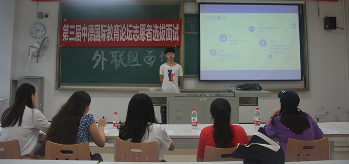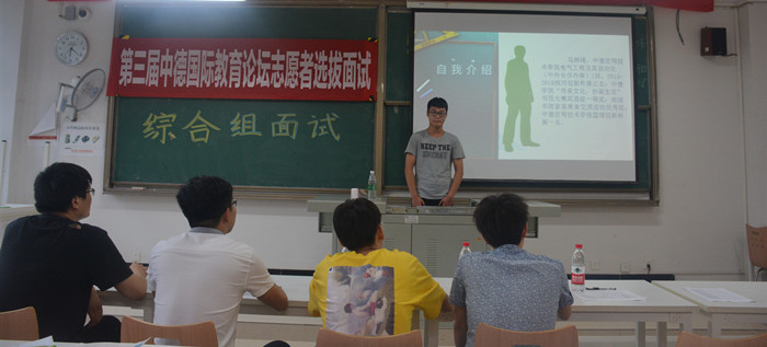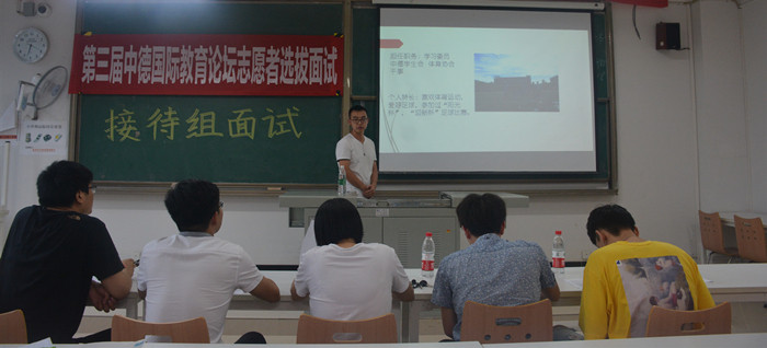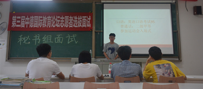 面试期间,每位同学都从容不迫,向评委老师积极地传达自己对志愿者工作的热忱。在他们的演讲里,不仅介绍了自己,还和评委老师分享了自己志愿者工作的经历。有人结识了志趣相投的同龄人,有人认识了和善的大叔,并和他们一起度过了非常美好的时光。正是这些愉快的经历促使他们继续做一名志愿者,帮助更多的人。每位选手都希望能为“中德交流”贡献自己的力量,并通过参与这个活动,提高外语交流能力,拓宽视野。