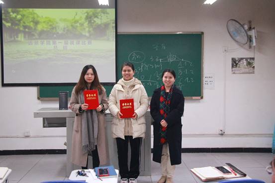 12月26日下午两点,远景学院于菩提多功能教室4举行第五场说课比赛。参赛教师分别为戴华、乌兰、强杨、汤妮、锂洋五位老师。本次说课比赛由执行院长皮若兰,教研室主任李梦瑶、强杨、彭可担任评委。最终李欢老师获得一等奖,戴华老师、唐智盟老师获得二等奖,汤妮老师、吴慈荷老师、朱雪珂老师获得三等奖。