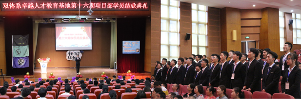 双体系卓越人才教育基地第十六期学员结业典礼于2019年6月26日下午2点整在下里巴人剧场举行。校长助理周伟、双体系主任陈仲华、各院系负责人及家长代表参与此次活动。
