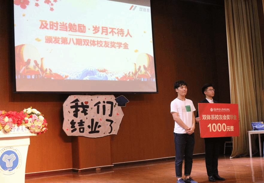 随后,双体八期学员、双体校友会理事江知航校友为煜耀一部颁发第八期“双体校友奖学金”,这份奖学金在双体人看来是一种肯定、一种勉励,同时是一种双体文化的传承,它既肯定了大家今天的优秀,也勉励大家在以后的工作中再接再厉。