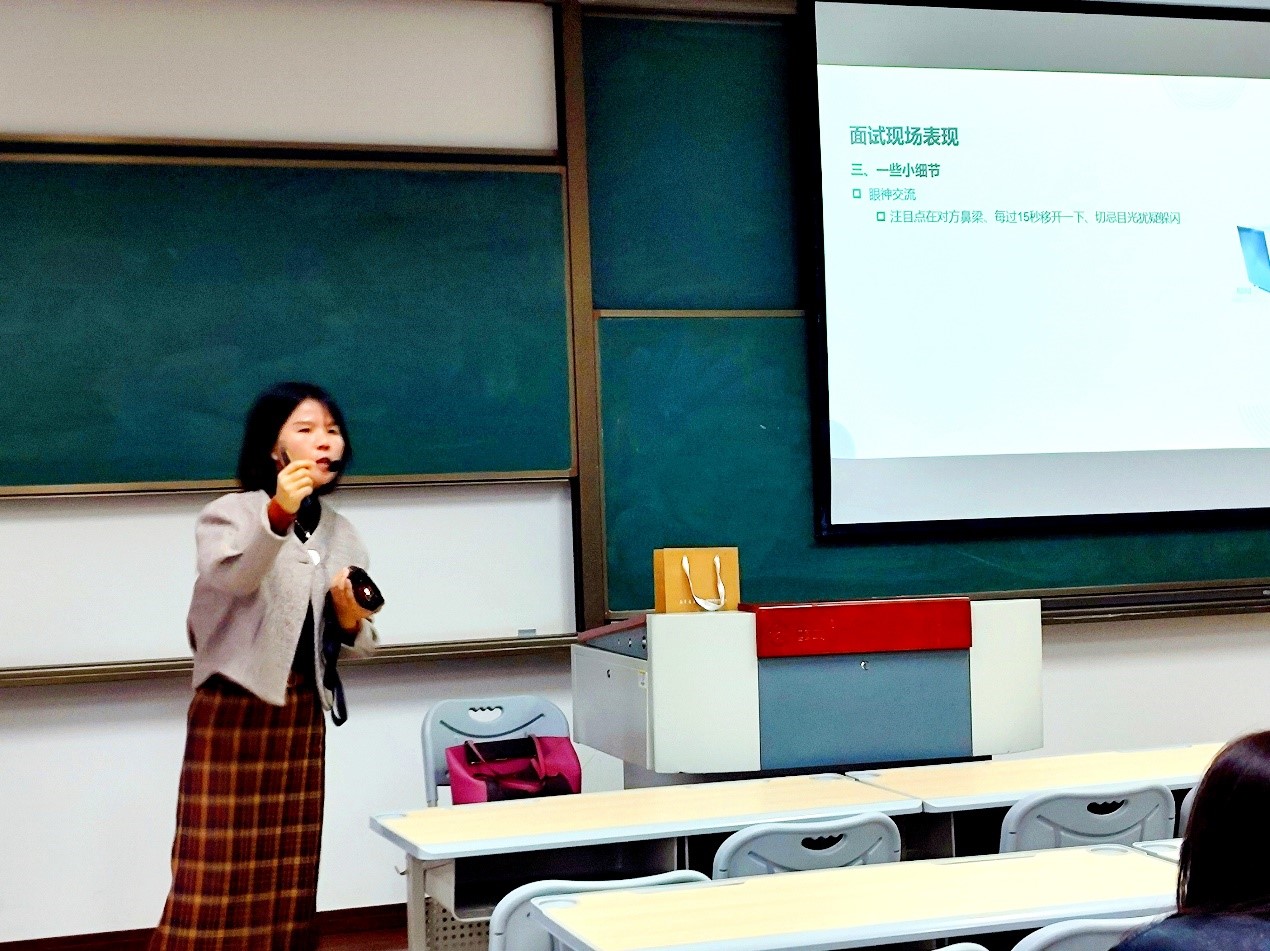 社会上要想分出层次,只有一个办法,那就是竞争!“‘面谈’大多是用人单位与面试者的第一次正式接触,假设能给用人单位一个良好的第一印象,也许是你择业成功的关键起点。”任院长向同学们强调了面试的重要性,同时针对在参与用人单位面试时需要注意的基本事项与面试技巧进行了讲解与指导。