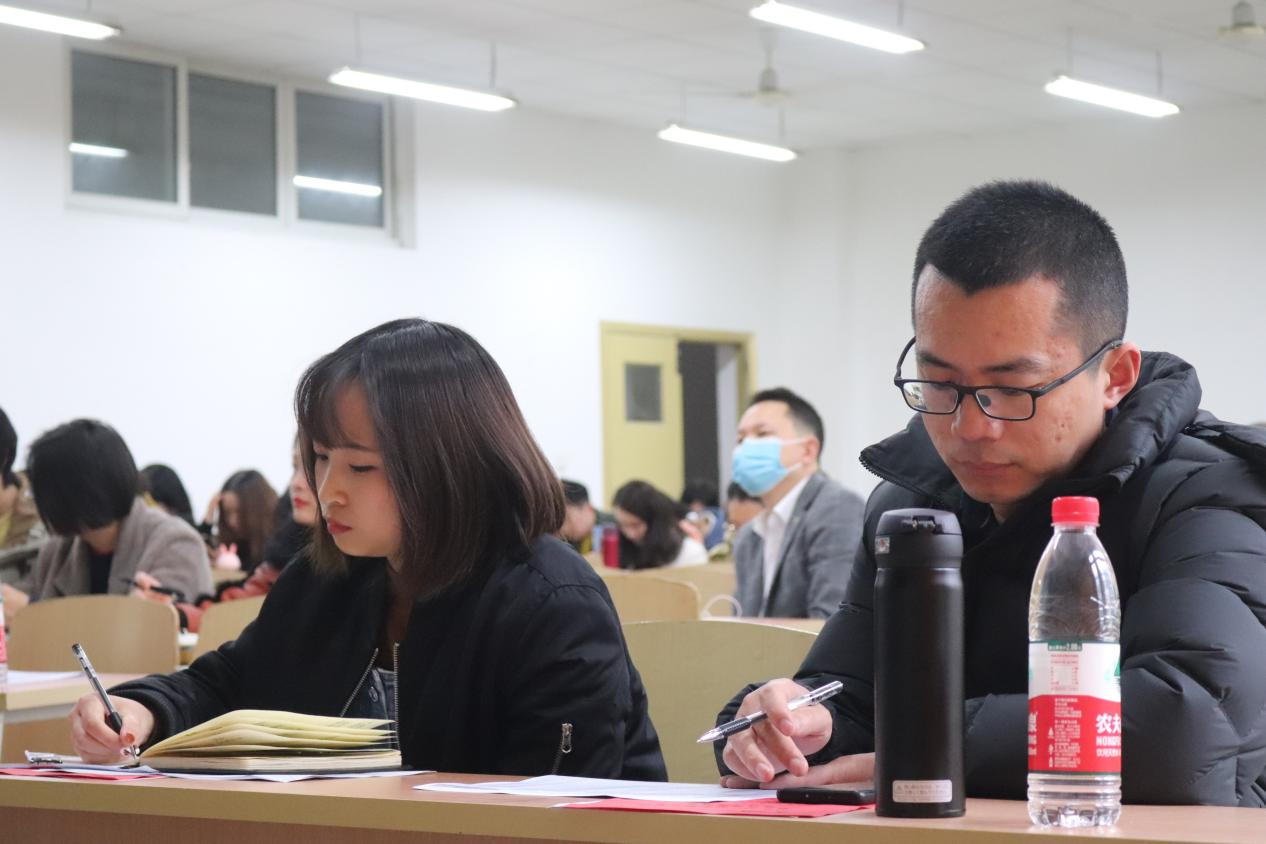 就创中心工作指导老师杨德龙用大量统计数据图就全国和学校2020届毕业生就业形势进行了精确分析,准确把控学生毕业去向及去向类型统计,列出就业类别,强调了专业、性别、升学、毕业选择、就业行情等因素对学生就业的重要影响。接着展示了学校就业创业校友指导工作体系,并对做好就业工作提出“坚守一个底线、杜绝两种思维、形成三种合力、做好四个阶段”,为日后学生择业提供了非常好的思路。