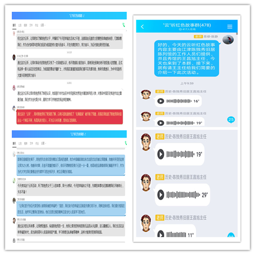 参与“云”听的学生们听完讲解后,纷纷在QQ群里发表感言,共计300余条。2019级工程管理2班黄靖媛同学说:“通过这次‘云’听红色故事,让我对陈独秀有了更深的认识和了解。他有自己做人的气节,一直坚持自己的原则,为国家作奉献。我们应该学习和传承这种精神,陈独秀父子为中华民族所做的贡献应该一直被后人铭记”;2019级动画1班李佳诚同学在群里感言:“陈独秀的那一句‘行无愧怍心常坦,身处艰难气若虹’让我铭记在心。凡是国民党政要或共产党叛徒的资助,他坚决不接受,对于国民党当局的利诱和政治拉拢,他更是断然拒绝,充分体现了陈独秀的铮铮傲骨。陈独秀和两个儿子的一身气节和风骨是留给我们的宝贵精神财富。作为当代大学生的我们应该努力奋斗,传承和宏扬革命先烈的红色精神,为祖国的繁荣昌盛贡献自己的一份力量!”