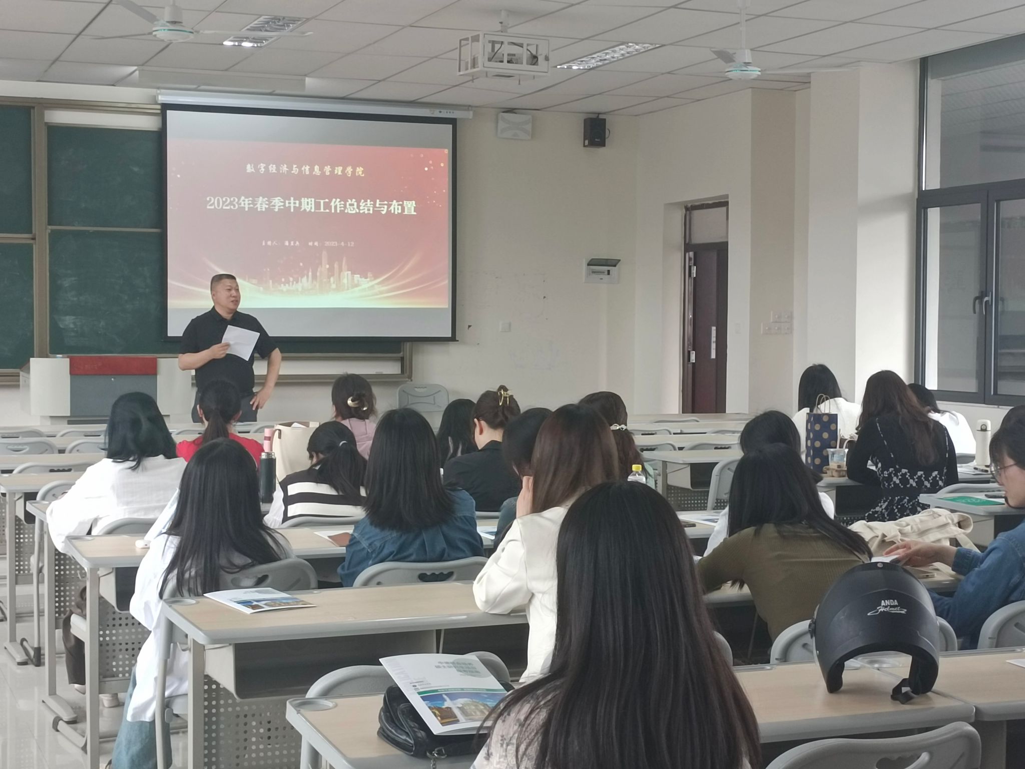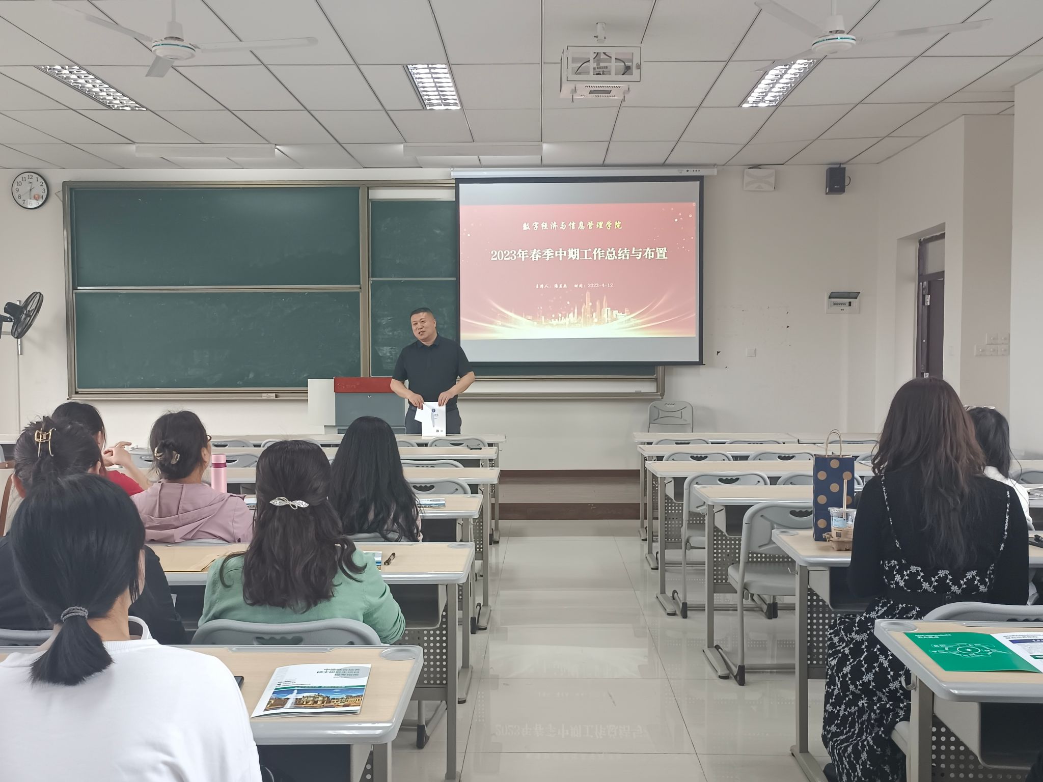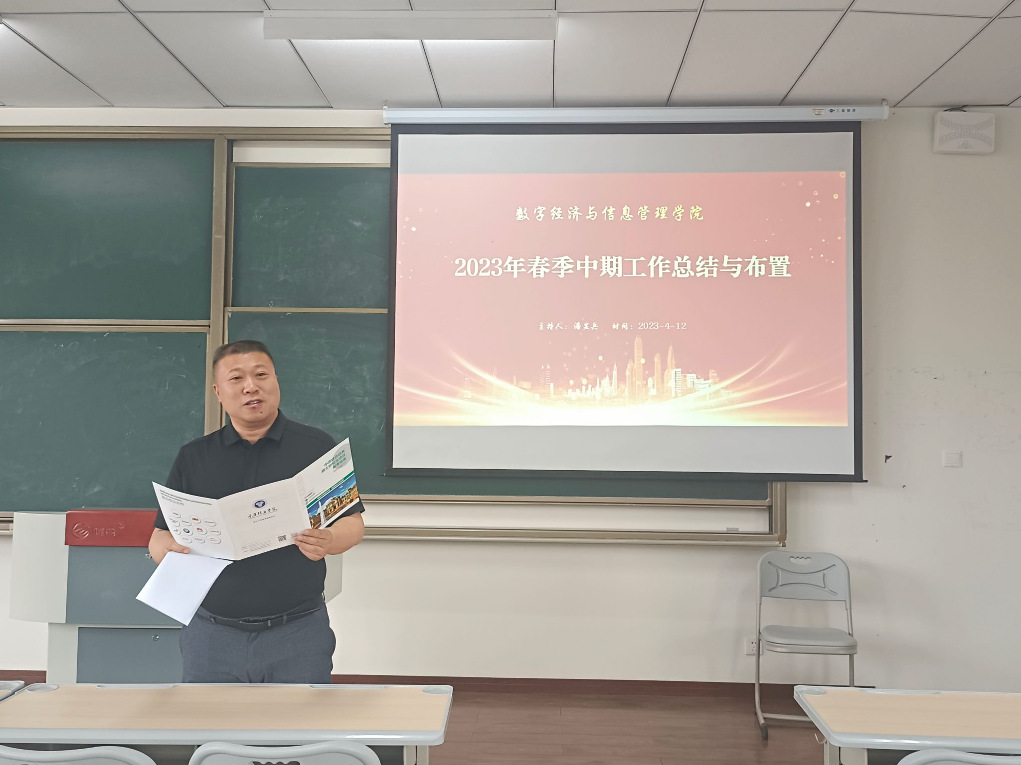为了进一步明确工作目标,扎实有序推进学校各项工作开展,鼓舞激发全体教职工工作热情,数字经济与信息管理学院于4月12日16:00召开全体教职工大会。本次会议由院长潘显兵主持,全体专任教师参与。