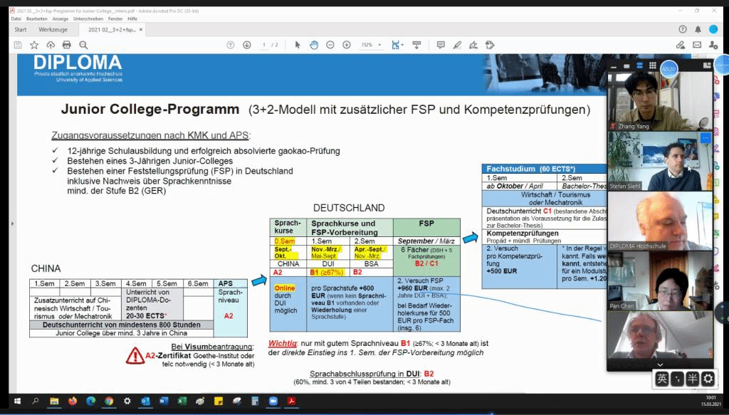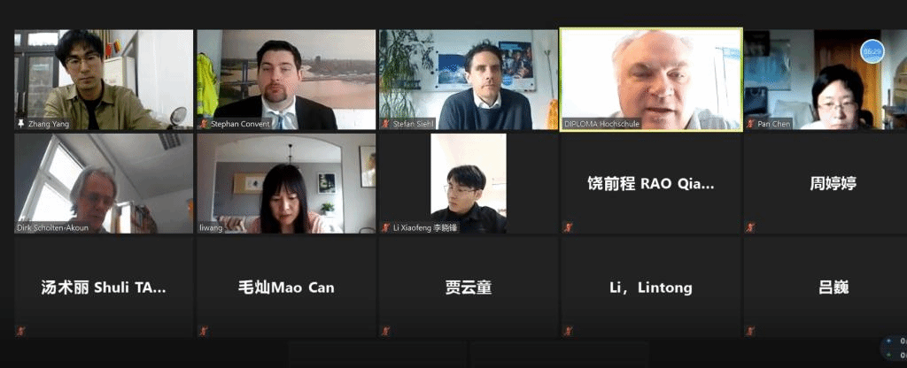 国际合作出新意,南湖侧畔春意浓。教育部部长陈宝生在2021年全国教育工作会议上指出“应加快教育现代化进程,开创教育国际交流与合作新天地”的大背景下,重庆移通学院中德学院已与德国北黑森应用技术大学展开了广泛丰富的合作。先后开展了访问学者、师资培训、教材互换、学生互访等多项交流活动,取得良好的效果,为我校中长期国际交流规划发挥了示范性作用。为进一步促进两校间的交流,促使中外合作办学项目的可持续发展,推进新合作、新融合,中德学院于本周一下午召开了北黑森应用技术大学-中德学院线上交流研讨会。