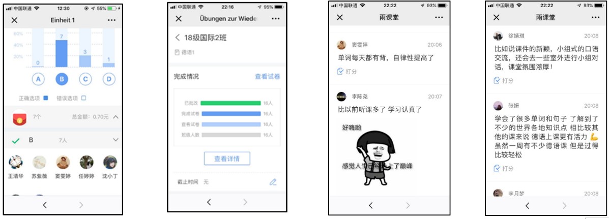 获奖教师需要具备能够熟练运用新型教学理念,包括雨课堂在内的智慧教学工具开展教学的能力,并取得良好的教学成果。在我院常年中外合作办学的大环境下,需要师生们不断吸收国内外各种先进的教学模式和学习方法。王琥老师数年来一直致力于信息化高校课堂教学改革实践研究,根据运用“雨课堂”等多种教学工具灵活地在德语课堂中开展丰富多样的智慧教学,构建“电脑+手机+网络”的新型课堂模式,并在我院师生中大力推广,提升了学生学习热情,取得了良好的教学效果,受到我院师生的一致好评,并于2019年4月申报以《基于“雨课堂”智慧教学方案下德语信息化教学模式的探索》为课题的校级教学改革项目。