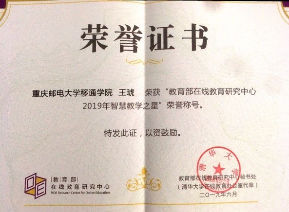 历时两个多月的评选,教育部在线教育研究中心公布了2019年度“智慧教学之星”荣誉称号评选结果,中德应用技术学院德语教师、欧标德语教学团队成员王琥荣获“智慧教学之星”荣誉称号。