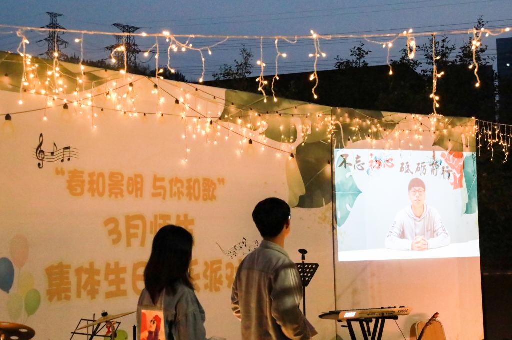悠扬的吉他声缓缓响起,一首《生日快乐》扫去热泪,将感动化作优美的旋律萦绕在师生的心头。一曲唱毕,早早准备好的生日蛋糕被推至台前,寿星们脸上洋溢着微笑,纷纷上前围绕成圆圈许下了心愿,将燃烧着的彩烛吹灭。“生日快乐!”在场的观众们一起高声喊出了生日祝福,声音带着愿望传到天际,愿寿星们新的一岁知足且坚定,温柔且上进,像星星一样努力发光。