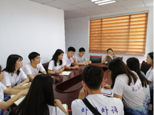 人美在心灵,城美在文明。2019年7月10日,实践团成员们来到新华社区,与社区工作者开展总结座谈会。本次座谈会邀请到新华社区唐敏主任以及社区负责人刘磊与实践团成员们一起参与讨论。座谈会中,实践团成员们首先对五天来开展的工作进行总结,再分别指出了本次实践活动中存在的以及发现的问题。