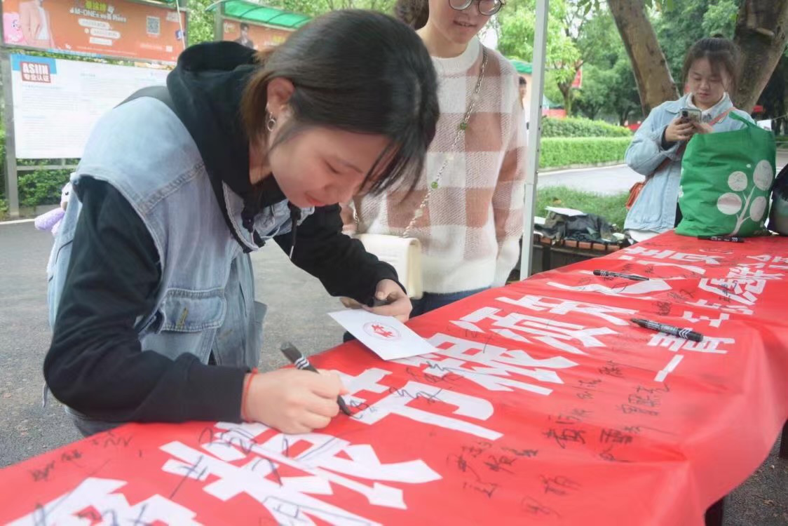 世界粮食日宣传推广活动作为此次主题活动的重要组成部分,在10月16日“世界粮食日”来临之际,校青联联合学校后勤处和食堂开展 “做一个有‘粮’心的人”主题活动。线下、线下共同出击,线上云端打卡“光盘行动”、“饥饿24小时”和线下“‘万人倡议’横幅签名”等活动,让全校师生了理解绿色粮食理念,了解一粥一饭当思来之不易的道理,培养移通学子做一个有“粮”心的人;实践岗位无偿奉献,志愿者营造文明食堂、清洁打扫、秩序维护、餐盘回收等一系列的行为,无处不体现体贴温暖的志愿服务。