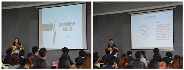 首先由学联驻会执行主席胡媛媛解读高校共青团改革方案,使各高校对改革创新工作的方式方法、改善完善团干部选用培养制度、改善强化支持保障等方面有更清醒的认识。随后各高校学生组织代表通过PPT围绕高校共青团改革学生工作特色做法进行简单的交流,并分别从优秀学生社团的运转及发展情况介绍、特色精品社团活动展示、社团管理模式与发展目标、社团管理与服务工作经验等角度,全面的展示了不同类型的优秀社团。