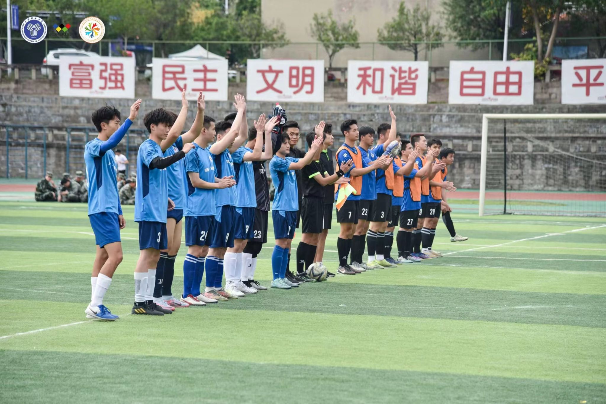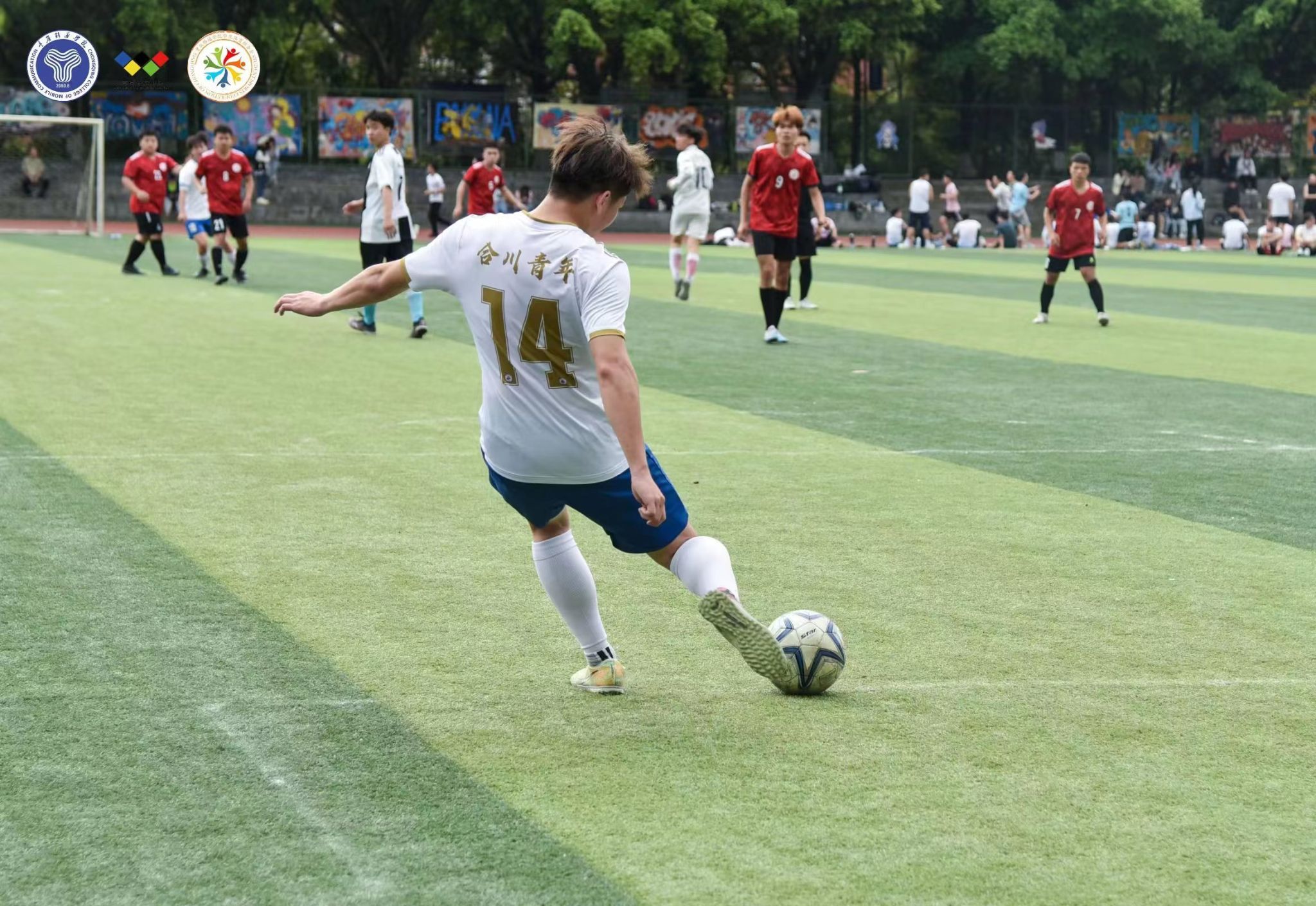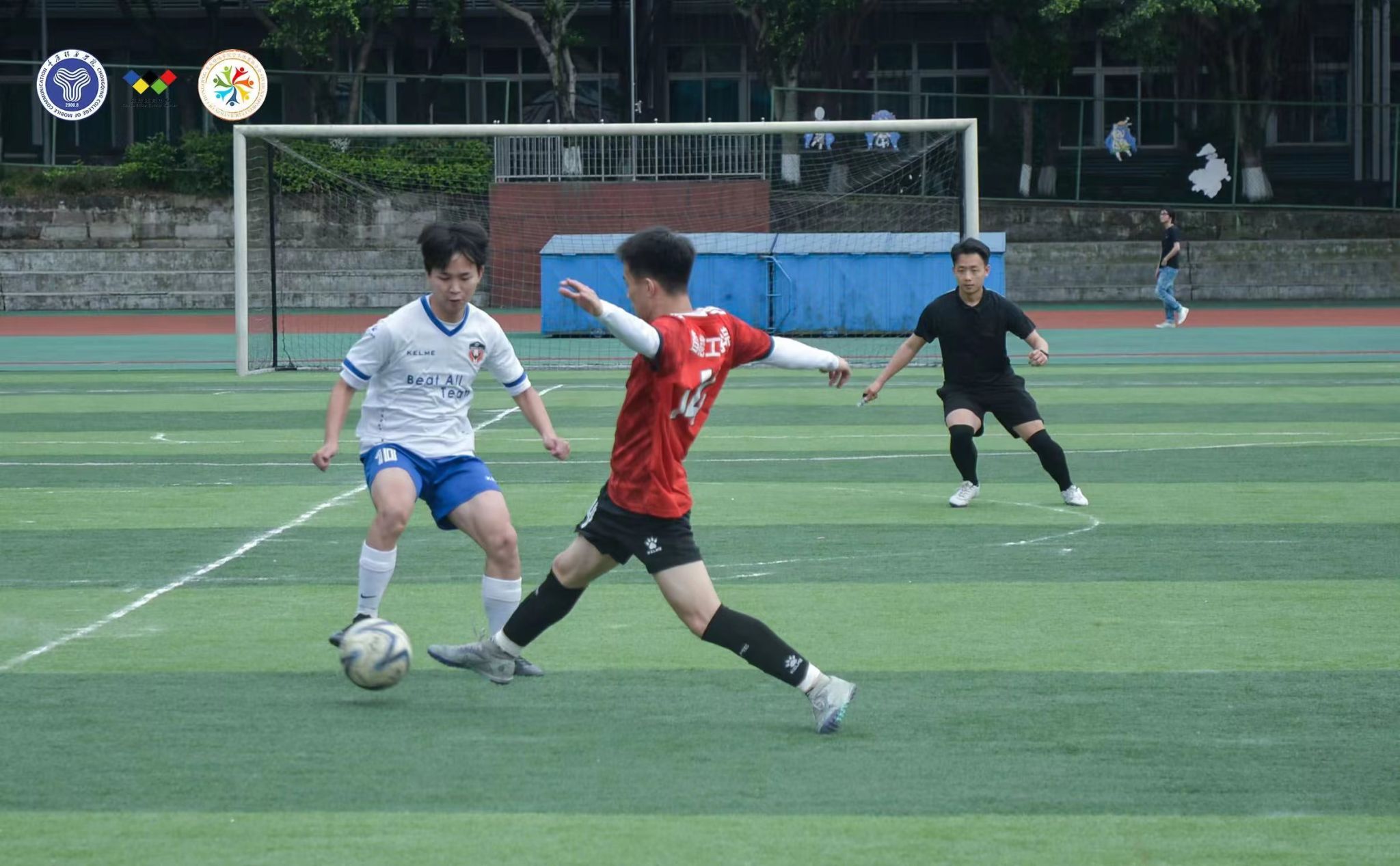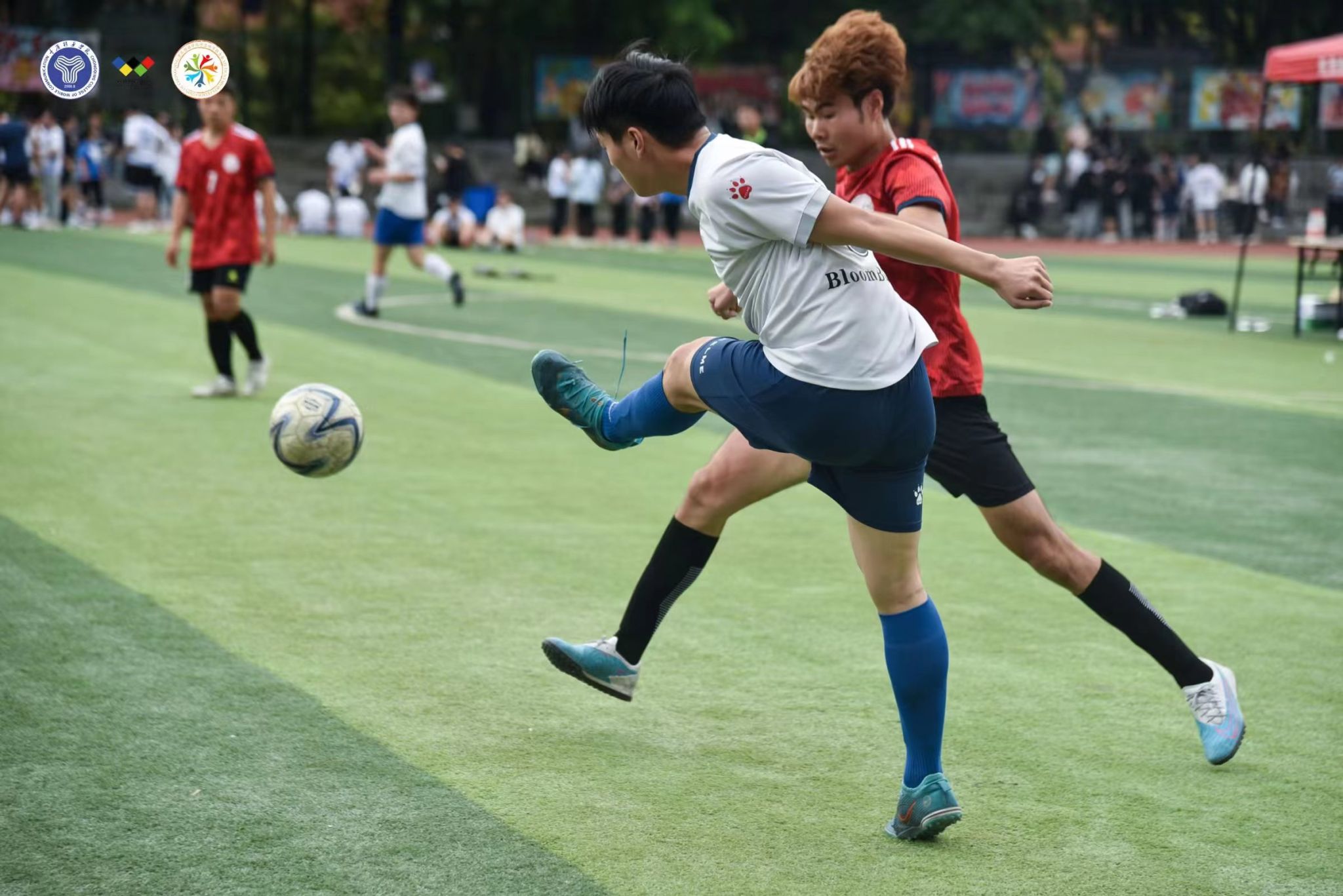 追风少年,青春激扬。绿茵球场上,队员们精神抖擞、拼劲十足,默契的传球,出色的防守,精准的射门,在实战中施展球技,在配合中展现足球魅力,一次次的成功抢断、沉着冷静的临门一脚、守门员每一次灵活的扑救……绿茵场上的每一颗心脏都随着足球在跳动,每滴血液都追着足球在奔涌。场下的观众更是热情洋溢,呐喊声助威声此起披伏,充分展现了移通学子积极进取、昂扬向上的精神面貌。一颗足球,一身球衣;满腔热血,满怀激情,在这个春天让我们一起在绿茵场上,燃动青春,共同感受足球的魅力!