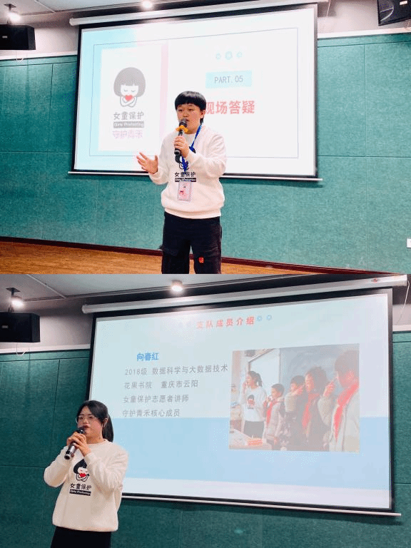 郑玲玲老师介绍了2020年“女童保护”性侵儿童案例统计及儿童防性侵调查报告。调查报告显示女童性侵数据都极为惊人,引起社会和政府高度重视,同时呼吁全社会行动起来积极推动形成社会支持力。最后,两位老师通过互动的方式,讲解如何加入“守护青禾”志愿者支队以及如何成为一名“女童保护”的讲师。