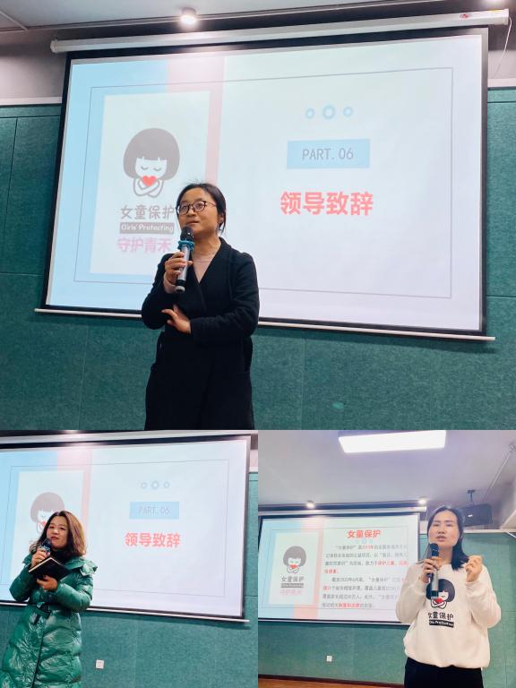 大会最后,通识教学部科学教研室主任张艳老师和北山书院发展导师徐秋月老师发表感言。两位老师都表达了对“女童保护”在我校发展成果的一种喜悦,由衷地感谢各位志愿者同学做出的努力,并鼓励新的志愿者同学们积极参加女童保护的活动,认真背教案,坚持录课,争取早日成为一名女童保护的讲师。