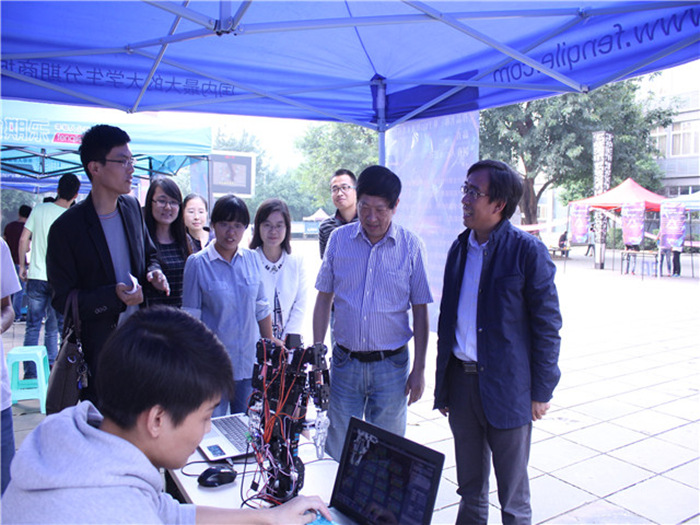 10月19日,第一二教学楼广场举办了第一届“智能科技,律动未来”课外科技作品展览活动。每一个科技成果的展示,都获得了同学们的围观,看着一个个被制作出阿里的科技成品,有的同学选择了沉思,有的同学则深深的叹服。副院长尹邦满博士、教务处副处长刘枚和自动化系主任汪纪锋教授参观了科技成果展示,行走式机器人、智能扫地机器人、取物机械手、纯手工制作安装和系统控制的配备都得到了他们的赞许和认同。参展途中尹副院长亲切的与同学们交谈讨论,汪教授对作品进行介绍和点评。一场科技展览会充满了热爱科学、崇尚科学的氛围,使同学们都参与其中,乐在其中。