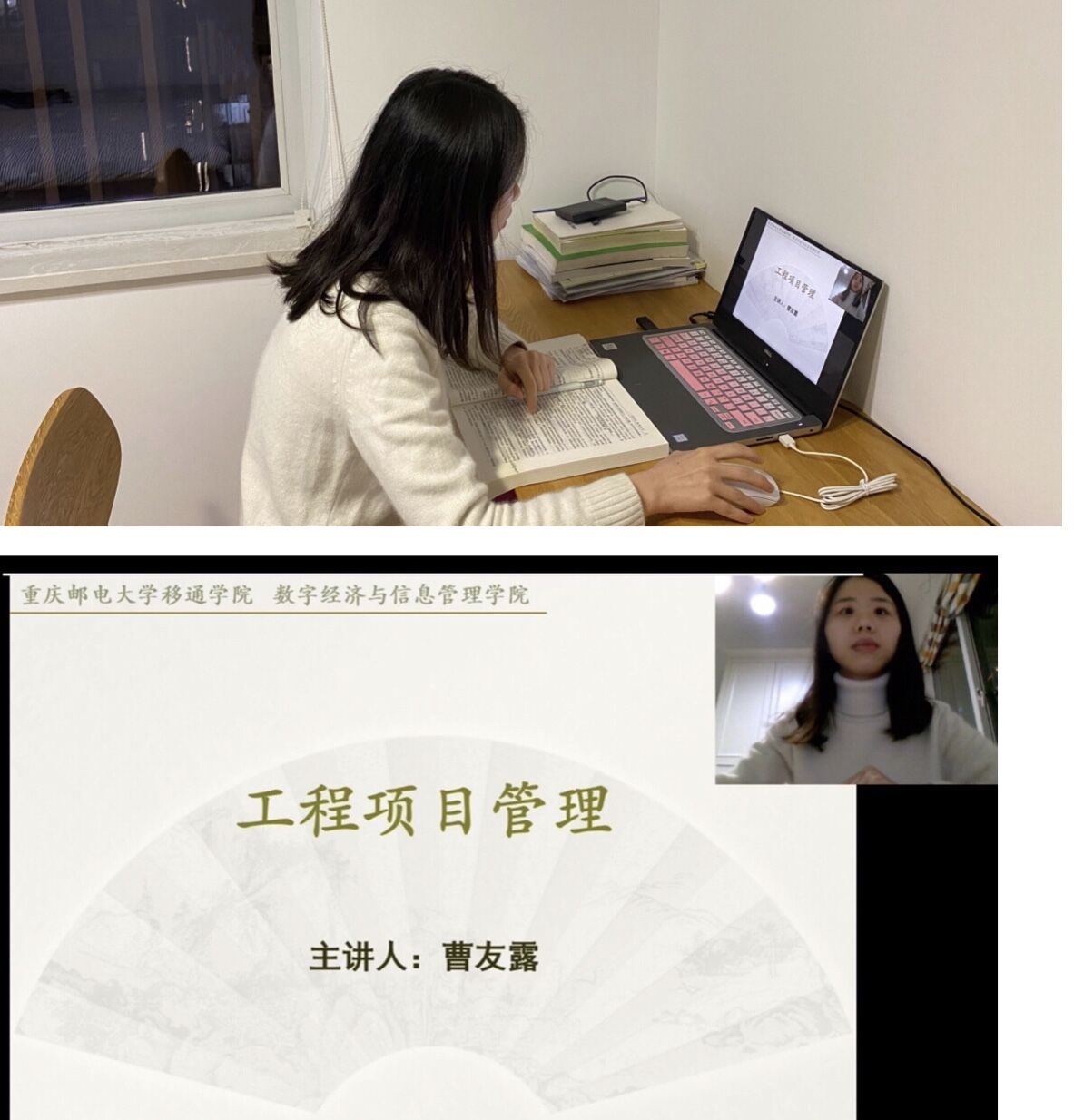 曹友露老师通过钉钉平台和工程管理专业的同学们进行了在线试播,她利用平台直播首先播放了与疫情相关的视频告知同学们在家要做好防护加强运动;然后试用了平台各项功能,并邀请了几名同学演示连麦操作;最后就讲授课程的近期规划、答疑安排等进行说明,通过平台将相关电子书、授课PPT完成推送。