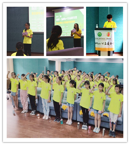 上午9时,2019扬帆"e+"公益夏令营重庆邮电大学移通学院营地,在爱莲书院举行了开营典礼。在典礼上,志愿者和营员代表先后上台发言,校团委吴静老师进行了总结发言并宣布了2019扬帆e+公益夏令营移通学院站正式开营。老师的发言中无不流露着对营员们的热烈欢迎,也对本次夏令营提出了具体要求。而后在主持人的带领下,营员们对《营员行为守则》《营地管理规定》等内容进行了学习,并举行了宣誓仪式。
