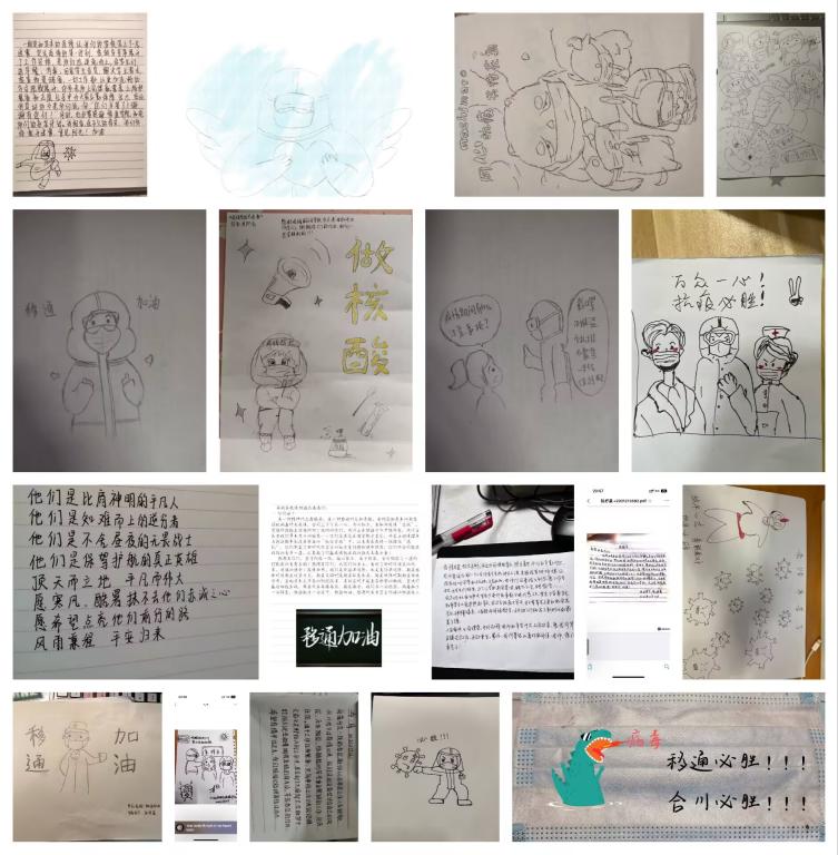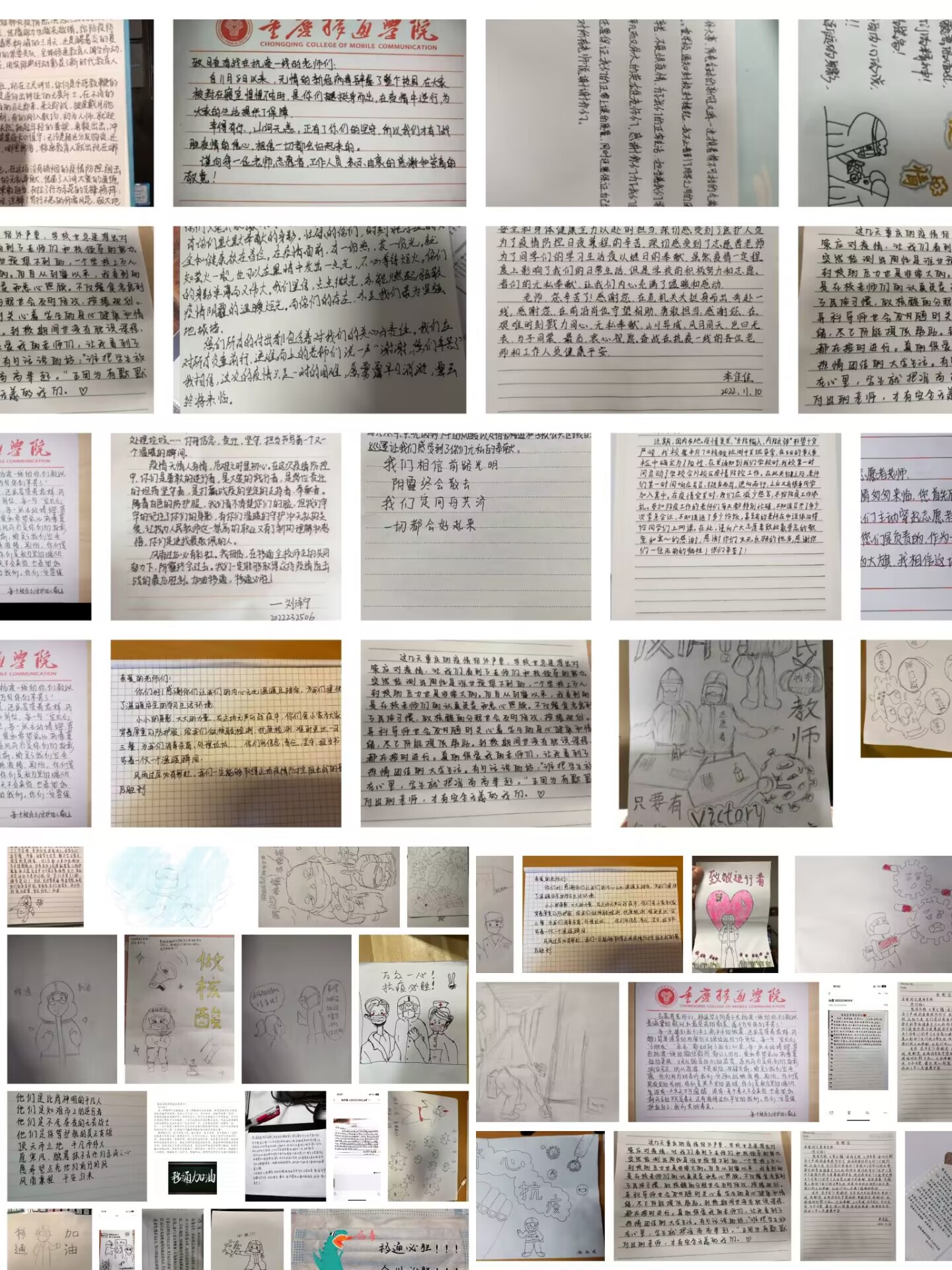 此次活动很快得到全体学子们的强烈支持,同学们参与热情高涨。一封封手写书信将对老师们深深的感激之情蕴藏在字里行间,诉说着对老师的感恩与鼓励;一幅又一幅极富创意的画作表达着对老师们的感激与抗疫的决心;一条条振奋人心的视频鼓励着大家坚持自我隔离,共克时艰。从字里行间与缤纷多彩的水墨里,无不深刻体现着大家攻克疫情难关的坚定决心,以及同学们对老师为抗疫辛勤付出的深深感激,更展现出师生之间那比山高,比海深的师生之情,令人为之动容。