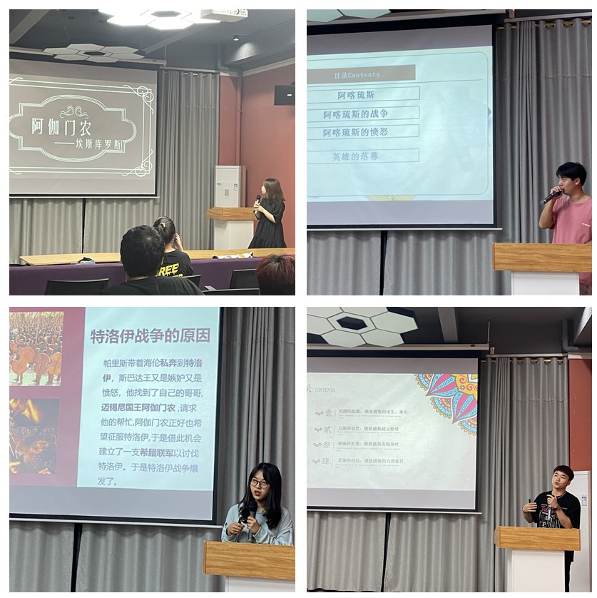 第四位陈述的是2020级轨道交通电气与控制1班的张倩天同学,他和组员们陈述的主题是“阿喀琉斯的愤怒”,讲解了特洛伊战争爆发后阿喀琉斯是如何参战、是如何因为愤怒而退出战争以及好友之死再次愤怒参加战争等。张倩天同学非常详细的刻画出了阿喀琉斯的英雄形象。