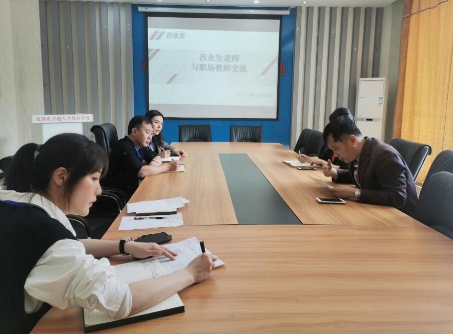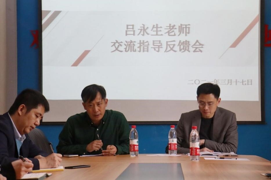 下午2点,吕永生老师与周伟副校长、双体系陈仲华主任及全体教师进行了交流反馈会。吕永生老师通过三天与师生的交流,肯定了老师们的授课水平,同时建议技术教师应增加板书的比例,帮助学生梳理课程的内在逻辑,强化学生对课程重点知识掌握,随后,陈仲华主任也针对提出的方案做出了相应的工作部署,强调了老师们应加快对时代潮流的适应,尽快完成短视频的制作。希望老师们加强课程管控,并持续给予学生鼓励,树立好学生的榜样,帮助他们成长。