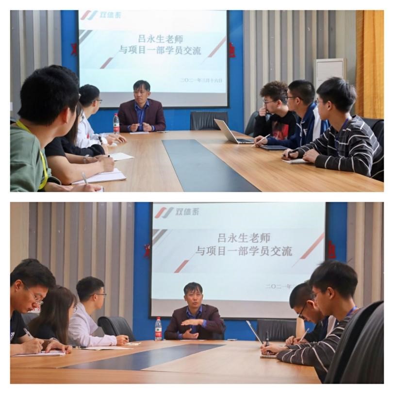 2021年3月15日-17日,双体系创始人吕永生老师莅临我校双体系卓越人才教育基地进行了为期三天的交流指导。期间就教学内容、授课技巧、双体系发展历程回顾等工作,与职场、技术老师们进行了交流探讨,并对项目部学员、开发中心学员作出了专业指导。